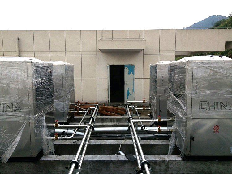 以北京某大學(xué)附屬學(xué)校為例,采用4臺15p循環(huán)熱泵熱水機(jī)組,每日生產(chǎn)180噸熱水,可滿足學(xué)校師生4500人洗浴。機(jī)組采用綠色能源不受資源限制,節(jié)能環(huán)保的熱水供應(yīng)裝置,使用少量的電能驅(qū)動(dòng)壓縮機(jī)作功,吸取空氣中的熱量,可全天候24小時(shí)生產(chǎn)出50℃~60℃的熱水,全年COPh值高達(dá)3.0以上,對比電鍋爐節(jié)省70%電量,并且改造后校園再無煤灰污染,熱水供應(yīng)穩(wěn)定,使用和維護(hù)綜合費(fèi)用節(jié)省30%以上。