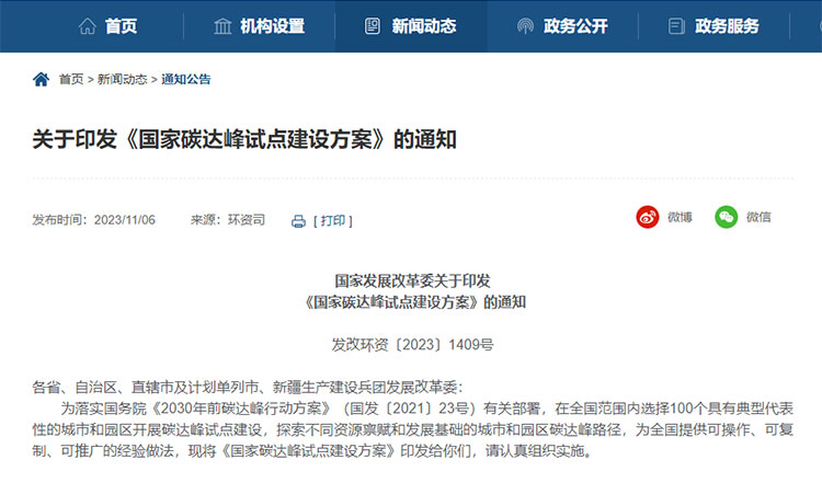 近日,國(guó)家發(fā)展改革委近日印發(fā)《國(guó)家碳達(dá)峰試點(diǎn)建設(shè)方案》(以下簡(jiǎn)稱(chēng)“方案”), 將在全國(guó)范圍內(nèi)選擇100個(gè)具有典型代表性的城市和園區(qū)開(kāi)展碳達(dá)峰試點(diǎn)建設(shè),探索不同資源稟賦和發(fā)展基礎(chǔ)的城市和園區(qū)碳達(dá)峰路徑,為全國(guó)提供可操作、可復(fù)制、可推廣的經(jīng)驗(yàn)做法。